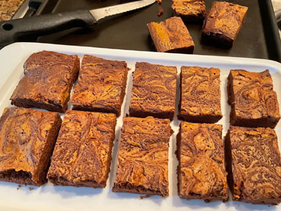 - Passer le beurre de cacahuète quelques secondes au micro-ondes pour le ramollir puis le déposer par cuillerées sur la pâte.