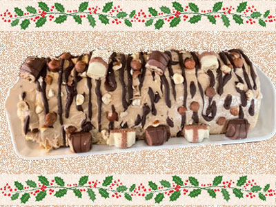 ** Placer dessous au préalable un rectangle de carton plastifié de la même taille, afin de déplacer facilement la bûche vers le plat de service.